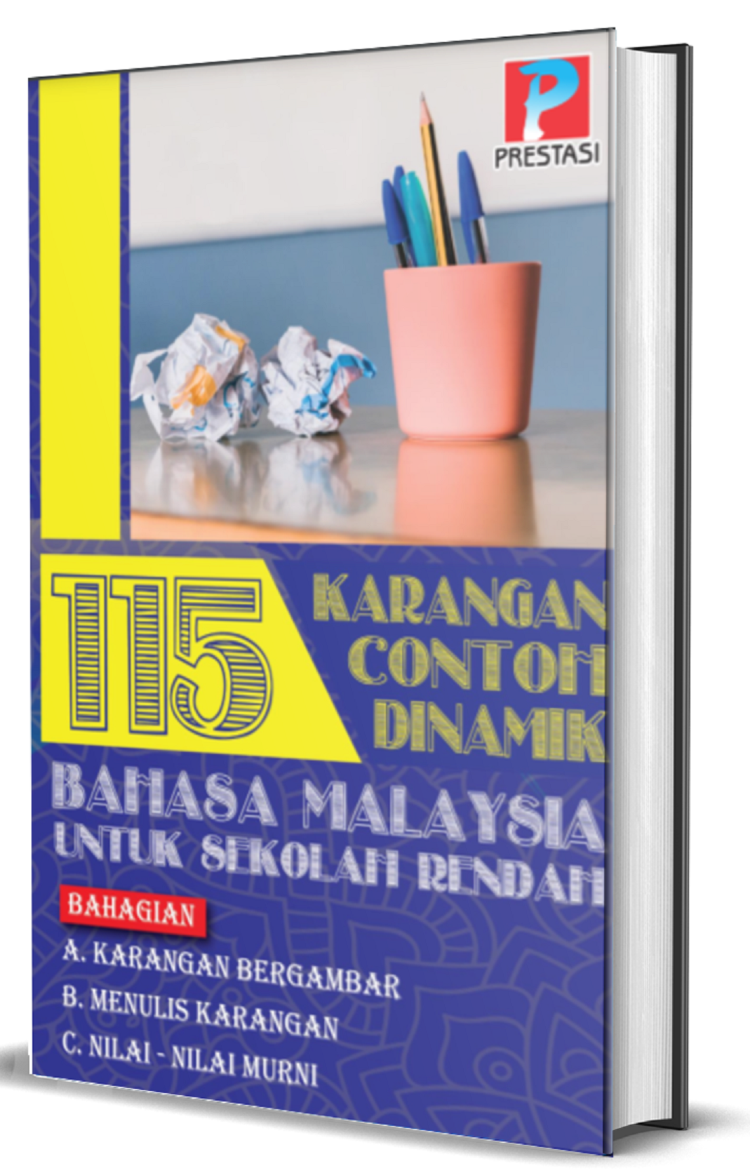 115 Karangan Contoh Bahasa Malaysia Dinamik untuk sekolah rendah terdiri dari tiga bahagian. Bahagian A : Karangan Bergambar Bahagian B : Menulis Karangan Bahagian C : Nilai-nilai Murni Buku ini menga